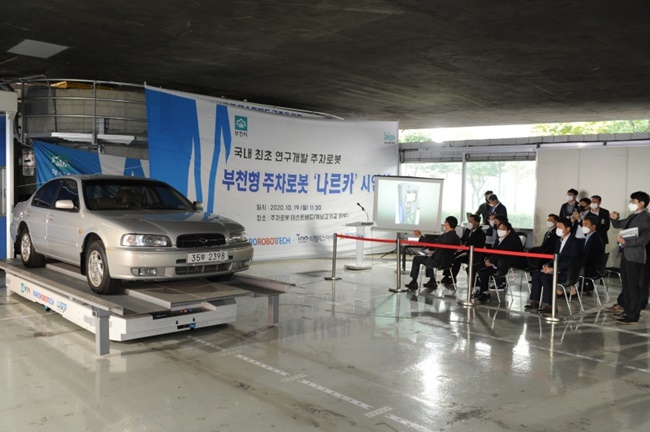 부천형 주차로봇 ‘나르카’가 안전에 한 걸음 더 가까워졌다. 부천시는 지난 10월 19일(월) 국내 최초 개발 중인 주차로봇 ‘나르카’의 본격적인 가동을 위해 국토교통부 종합교통정책관을 초청해 테스트베드(계남고가교 하부)에서 시연회를 개최했다.
