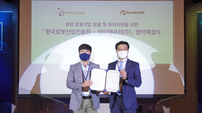 한편, 이번 행사의 일환으로 한국로봇산업진흥원과 와이앤아처는 유망한 로봇기업을 발굴하고 로봇 창업 활성화와 후속 투자 연계 등 투자 유치 확대를 위해 업무협약을 체결했다.