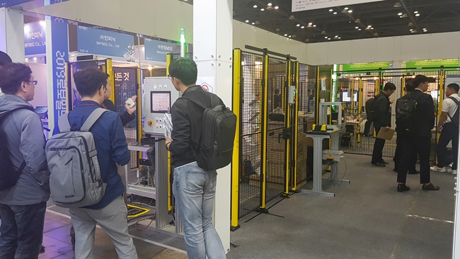 이날 홍보관에 실제 빈피킹 및 픽 앤 플레이스 어플리케이션을 구축하고, 안전검사 규격에 적합한 안전펜스 설치를 비롯해 세이프티 PLC, 라이트커튼, 안전 매트, 도어 인터락, 안전 레이저 스캐너 등으로 구성된 머신 가드 안전 솔루션을 시연했다.