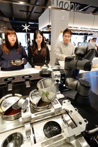 LG전자가 CJ푸드빌과 함께 개발한 요리 로봇을 음식점 주방에 도입하며 로봇 사업에 박차를 가한다.