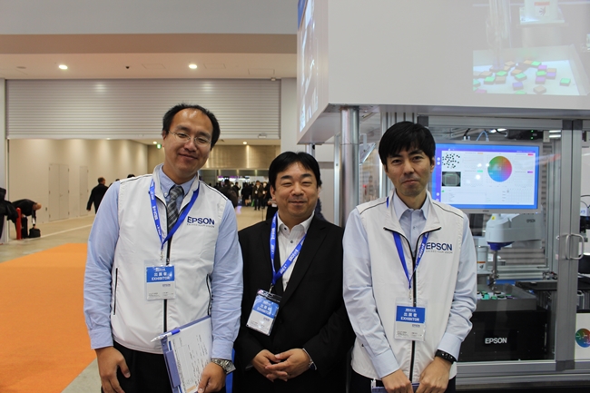 (왼쪽부터) 세이코 엡손 쿠리 료헤이 시니어스텝, 하라다 아츠시 공학박사, 아이소 세이지 시니어스텝(사진. 로봇기술)