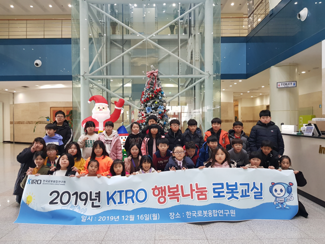 또한 지난 12월 16일(월)에는 KIRO 본원에서 ‘KIRO 행복나눔 로봇교실’을 개최했는데, 이는 KIRO가 재능기부형식으로 진행하고 있는 사회공헌 활동의 일환이다. 이번 행사에는 KIRO의 자매지역인 청림동 학생들이 참석해 자리를 빛냈다.