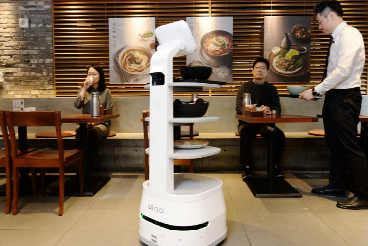 LG전자가 CJ푸드빌이 운영하는 제일제면소에서 음식을 나르는 'LG 클로이 서브봇(LG CLOi ServeBot)'을 선보였다.