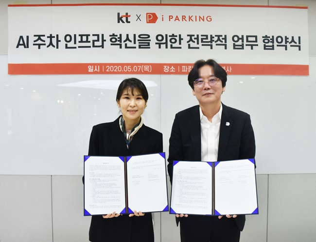 KT가 주차 플랫폼업체 파킹클라우드와 지난 5월 7일(목) 오전 서울 영등포구 파킹클라우드 본사에서 ‘AI를 적용한 차세대 주차 서비스 공동 개발’을 위한 업무협약(MOU)을 체결했다고 밝혔다. 협약식에는 KT AI/BigData사업본부장 김채희 상무, 파킹클라우드 신상용 대표 등 양사의 주요 관계자들이 참석했다.