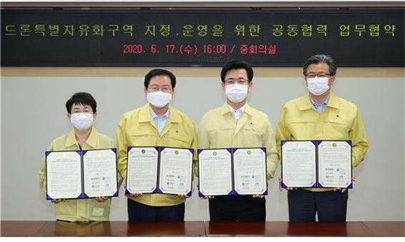 대전시와 3개 구청이 드론특별자유화구역 지정을 위한 MOU를 체결했다. (사진. 대전시)