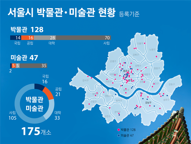 한편 서울시는 박물관·미술관 도시, 서울 완성을 위해 시설 확충 뿐 아니라, 사립 박물관·미술관 활성화를 위한 다양한 지원 사업을 펼치고 있다. 각계 전문가로 구성된 민관 협치기구 ‘박물관·미술관도시 서울 정책위원회’도 운영 중이다.