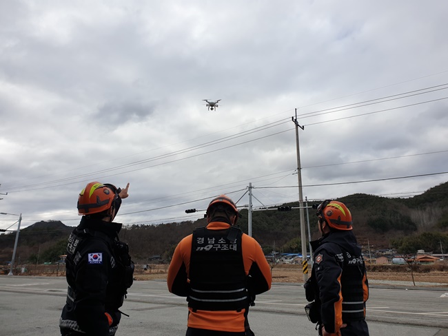 경상남도 소방본부가 '소방드론'을 활용해 수색활동을 진행했다. (사진. 경상남도)