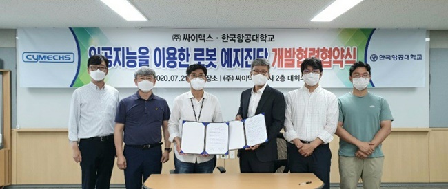 (주)싸이맥스가 한국항공대학교와 'AI 활용한 로봇 예지진단 개발협력 협약식'을 진행했다. (사진. (주)싸이맥스)