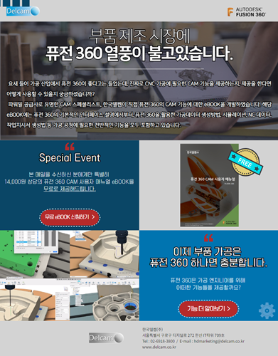 델켐 관계자는 “당사의 eBOOK은 퓨전 360의 기본적인 인터페이스부터 가공데이터 생성방법, 시뮬레이션, NC 데이터, 작업지시서 생성법 등 가공 공정에 필요한 전반적인 기능을 모두 포함하고 있다”라며, “CNC 가공에 필요한 CAM 기능과 더불어 사용 방법을 통합적으로 살펴볼 수 있도록 지원할 것”이라고 전했다.