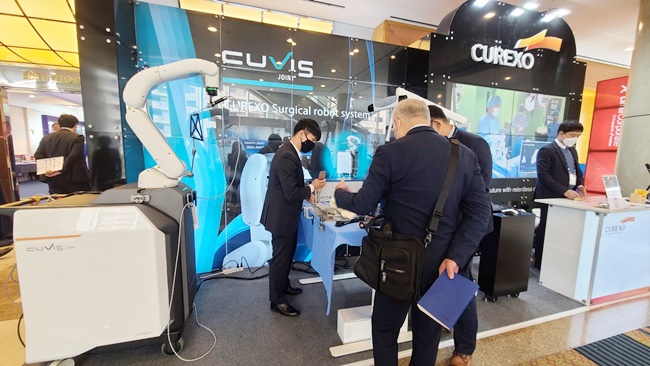 큐렉소의 '큐비스-조인트'가 학회 참가자들의 관심을 모았다. (사진. 큐렉소)