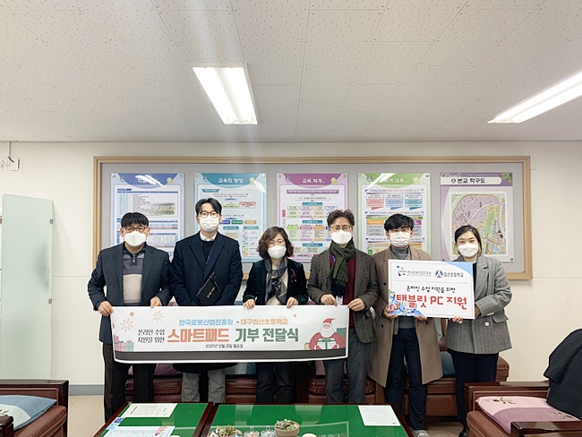 한국로봇산업진흥원(이하 진흥원)이 대구 침산초등학교를 방문해, 학생들의 온라인 학습 지원을 위한 태블릿 PC를 전달했다.
