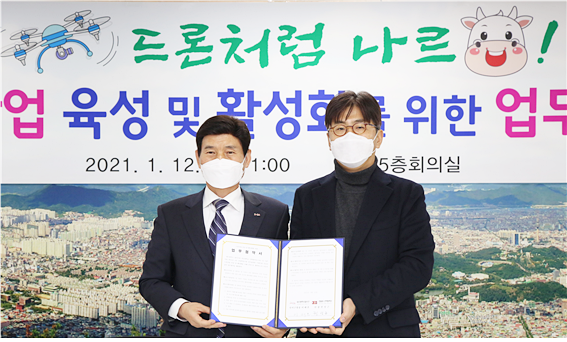 대구 달서구가 지난 1월 12일(화) 달서구청 5층 회의실에서 경일대학교 산학협력단과 드론산업 육성 및 활성화를 위한 업무협약(MOU)을 체결했다.