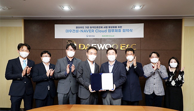 대우건설이 을지로 대우건설 본사에서 원격드론관제 사업을 본격화하기 위해 네이버클라우드와 업무협약(MOU)을 체결했다. 이번 협약에서 양사는 원격드론관제 시스템의 클라우드 활용, 신규사업 발굴 등에 협력하기로 했다.