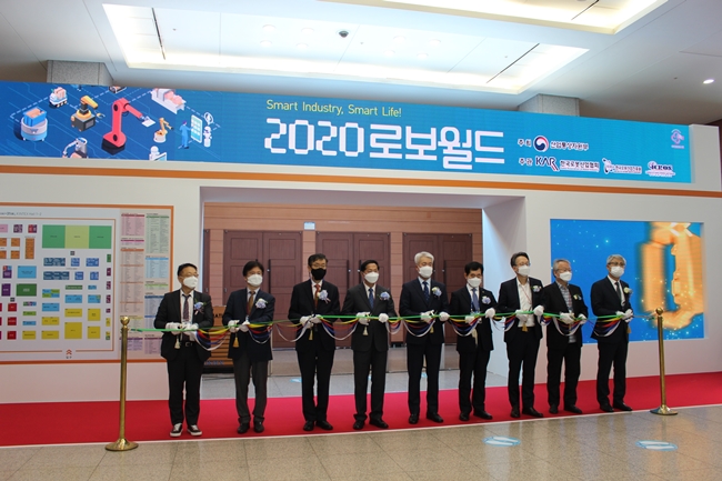 지난해 개최된 2020로보월드에서 관계자가 커팅식을 진행하고 있다(사진. 여기에).