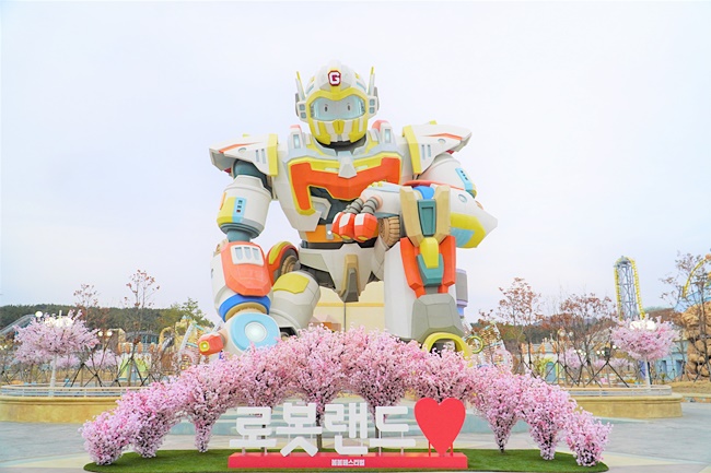 로봇랜드 마스코트, ‘가디언 로봇’이 있는 ‘로봇광장’에도 봄 정취를 물씬 느낄 수 있는 벚꽃과 조형물을 선보이며 로봇랜드 필수 인증샷 코스로 자리매김하고 있다.