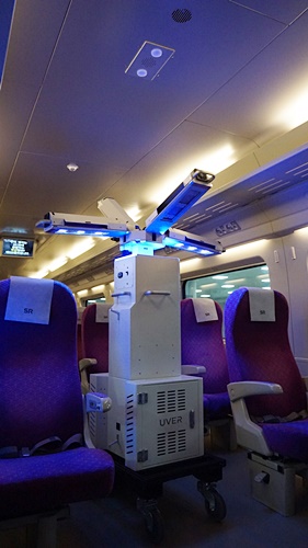 앞서 유버는 SRT 수서역 및 기차 내 객실에 LED 살균 로봇을 공급했다(사진. 유버).