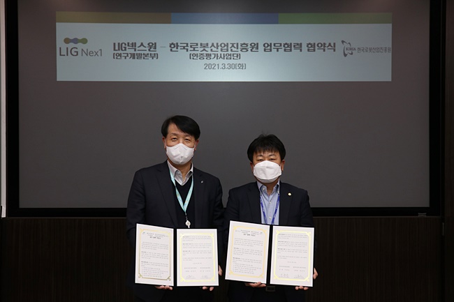한국로봇산업진흥원과 LIG넥스원이 로봇산업 발전을 위한 업무협약을 체결했다(사진. 한국로봇산업진흥원).