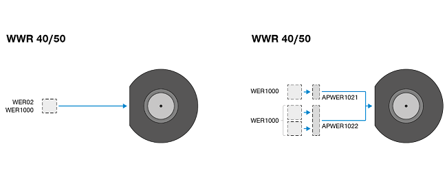 한편, 에너지 엘리먼트 WER3000FLA01-00-A 및 WER3000LLA01-00-A는 모든 공작물과 용접봉 사이의 접지 전위를 통해 기존의 용접을 가능하게 한다. 이 장치는 최대 140A의 전류를 전송할 수 있으며 접지 또는 전극 측에 사용할 수 있다.