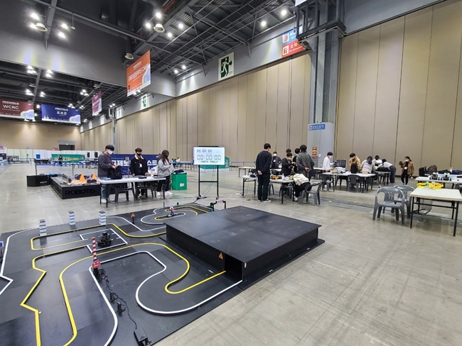 로봇경진대회 참가자들이 각자 로봇을 점검하고 있는 모습(사진. 한국로봇산업협회)