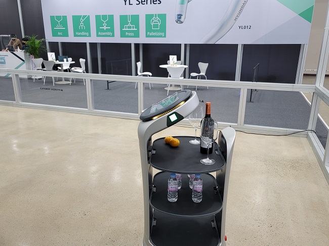 식음료를 서빙하는 현대로보틱스의 서비스로봇(사진. 로봇기술)