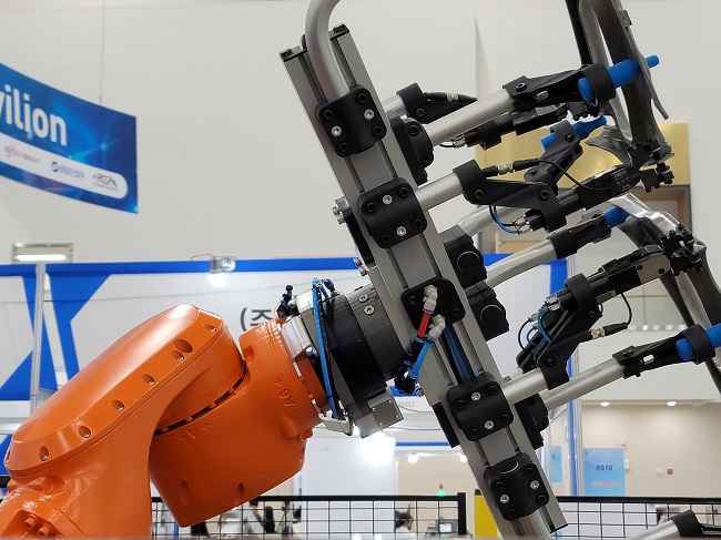 한편 이 밖에도 동사는 CFRP 복합소재를 적용한 경량 그리퍼와 로봇의 모션을 변화시키지 않고도 호스의 꼬임 없이 한 방향으로 무한 회전이 가능한 스위벨 등을 함께 소개했다. 최재근 대표이사는 “CFRP 복합소재 그리퍼의 가장 중요한 강점은 경량화이다. 경량화된 그리퍼는 로봇의 속도를 높이는 동시에 로봇 페이로드의 한계를 낮출 수 있다. 요컨대 CFRP 복합소재 그리퍼를 선택함으로써 로봇 시스템 주변에 요구되는 장치 전반에 대한 코스트를 절감하고 생산성을 향상시킬 수 있다.”라며 “스위벨 또한 마찬가지이다. 로봇 액세서리 하나를 장착함으로써 호스 꼬임을 방지하기 위해 로봇에 불필요한 모션을 추가하고, 티칭 난이도가 올라가는 상황을 방지할 수 있으며, 단선으로 인한 A/S 비용 또한 절감할 수 있다.”라고 강조했다.