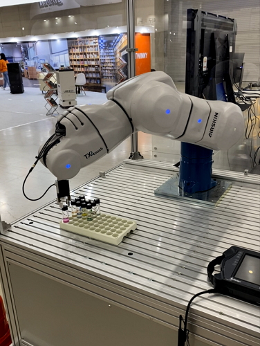 마그네틱 ATC를 이용해 여러 툴을 교체하며 커피를 타는 로봇 데모(사진. 로봇기술)