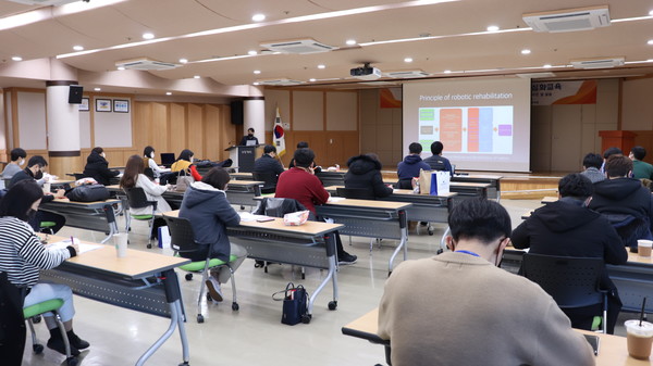 경기도장애인복지종합지원센터 누림센터 대회의실에서 개최된 직무심화교육은 세브란스병원 재활의학과 나동욱 교수의 '웨어러블 로봇의 치료적 의의와 최신 재활의학 동향' 강연과 함께 엔젤로보틱스 신길호 물리치료사의 엔젤렉스 사용방법 및 기능에 대한 이론교육이 진행됐다.
