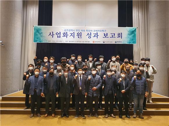 이날 성과보고회에는 광주광역시, 한국생산기술연구원, 그린카진흥원, LG유플러스, 에이엠특장, 이아우토반 등 총 60여 명의 특구 실증기관과 참여기업이 참석했다.