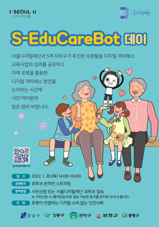 서울디지털재단은 지난 2020년 5개 자치구에서 시범사업을 실시해 3천 3백 명을 교육한 데 이어, 작년에는 교육 대상을 5만 5천여 명으로 대폭 증대했으며, 올해부터는 정규사업으로 추진할 방침이다. 한편, 서울디지털재단은 이번 사업의 일환으로, 로봇을 활용한 동요, 율동, 화재 안전교육 등 다양한 교육 콘텐츠를 개발해 노인, 어린이들에게 교육을 지속한다는 계획이다.