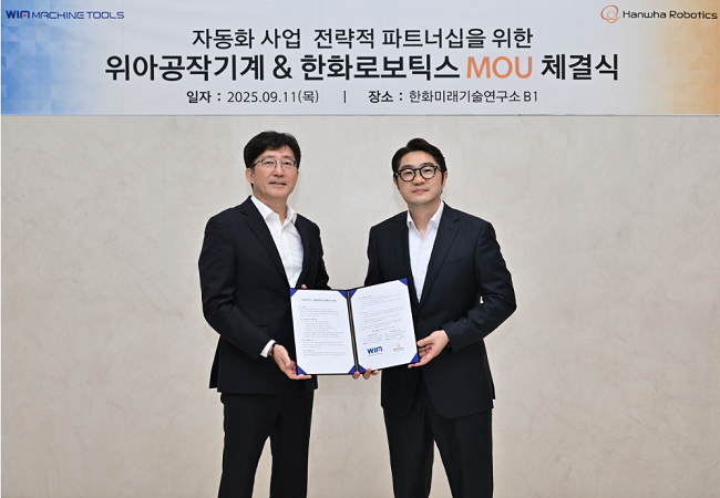 양사는 오는 22일부터 독일 하노버에서 열리는 세계 최대 공작기계 전시회 ‘EMO 2025’에서 첫 번째 협업 성과를 공개할 예정이다. 한화로보틱스의 협동로봇과 위아공작기계의 공작기계를 결합한 자동화 솔루션 2종을 전시한다. 내년에도 국내외 주요 전시에 공동 출격할 계획이다.