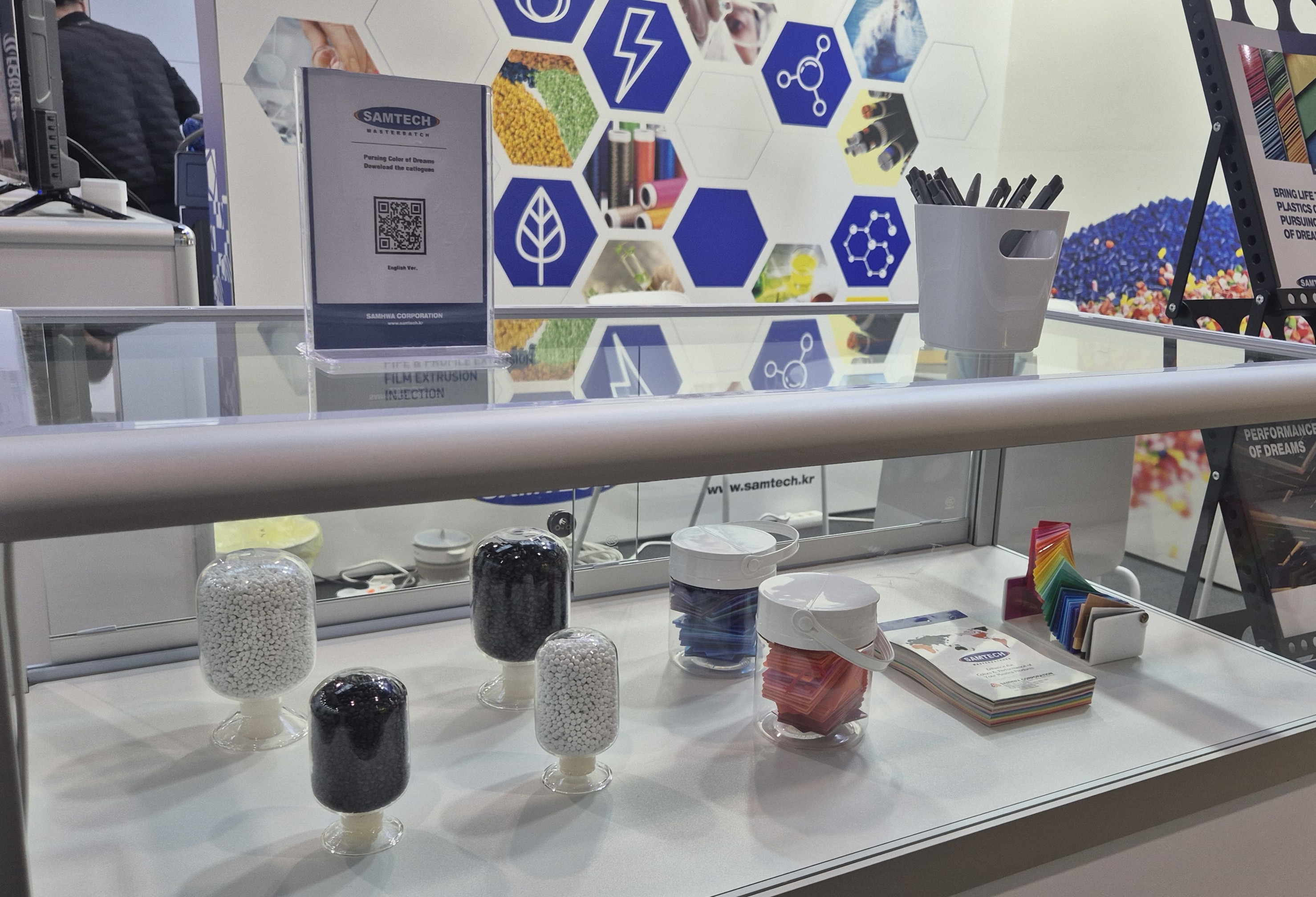이번 전시회에서 삼화기업은 플라스틱 및 산업용 고무 분야에서 36년간 축적한 기술력을 기반으로 글로벌 시장을 향한 성장 비전을 제시했다. 특히 ▲UV 안정제·난연제·정전기 방지제 등 첨가제를 포함한 첨가제 마스터배치 ▲30,000가지 이상의 색상 매칭이 가능한 컬러 마스터배치 ▲30~70% TiO₂ 함량의 화이트 마스터배치 ▲30~50% 카본블랙 기반 블랙 마스터배치 등 다양한 제품 라인업을 선보이며 관람객들의 주목을 받았다.