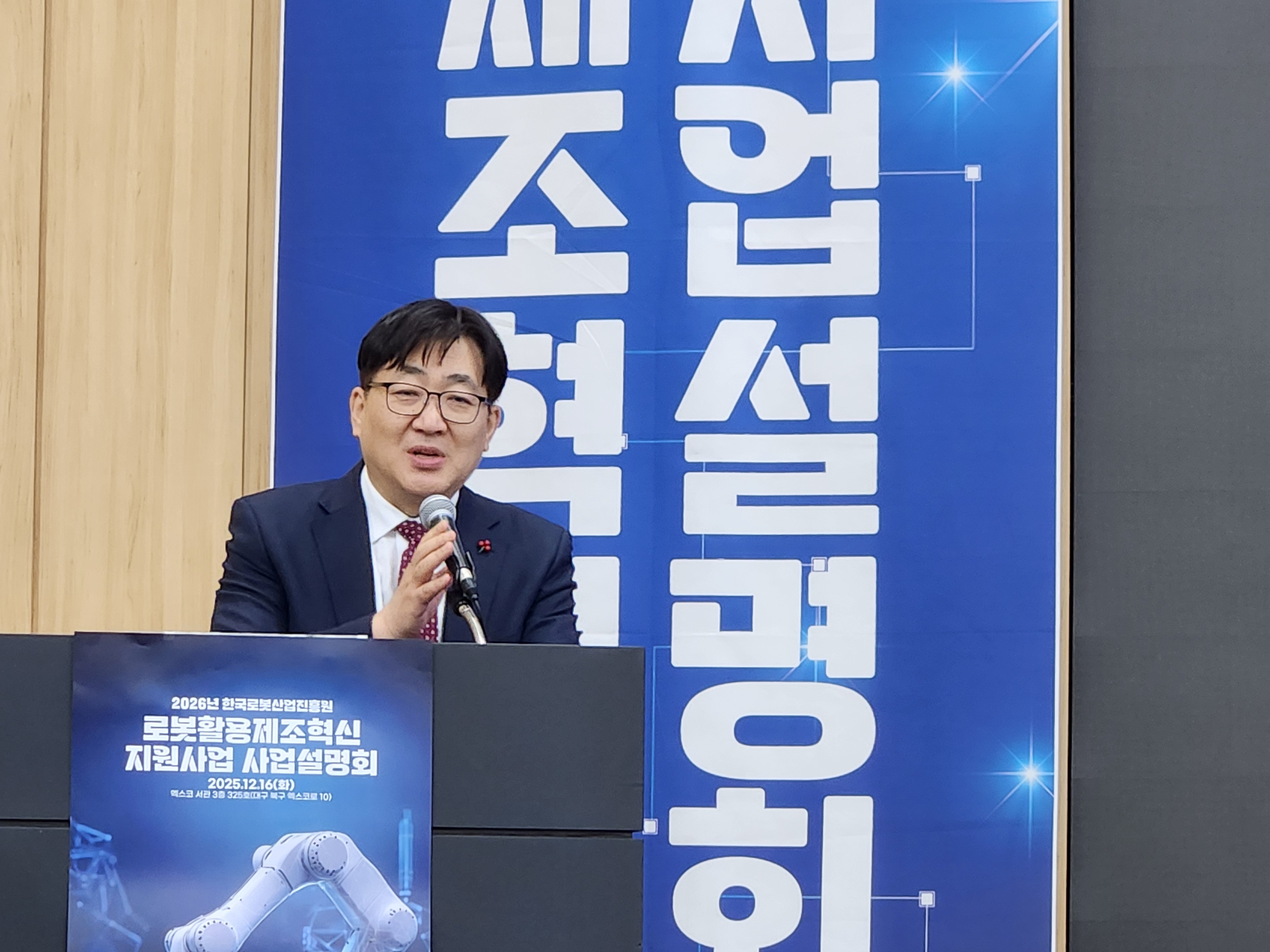 한국로봇산업진흥원(이하 KIRIA)가 지난 12월 16일(화) 대구 엑스코에서 수요·공급기업 관계자 350여 명이 참석한 가운데 ‘2026년 로봇활용 제조혁신 지원사업’ 설명회를 성황리에 개최했다.