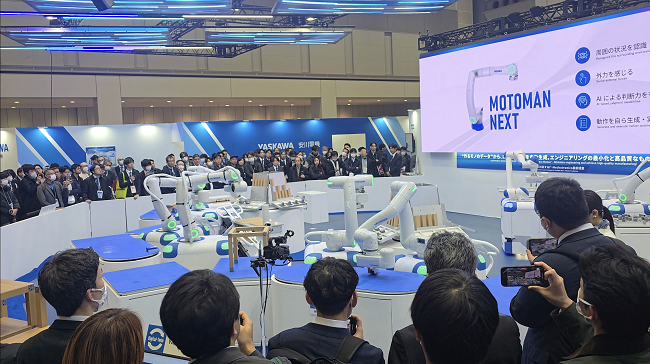 이런 상황에서 야스카와전기는 이번 iREX 2025 참가사 중 가장 트렌드에 적합한 AI와 로봇 기술의 융합으로 폭발적인 관심을 모았다. 피지컬AI 분야에서 소프트뱅크와 협력하고 있는 야스카와전기는 이번 전시회에서 AI 로보틱스 기술과 소프트뱅크의 AI-RAN 기술을 결합함으로써 실시간으로 센서·카메라 데이터를 분석해 자율적으로 작업 상황에 대응하는 데모 시연을 진행했다. 특히 제조 공정 외에 사무 공간처럼 인간과 공존해야 하는 환경에서의 로봇 협업 사례도 함께 공개했다. 해당 데모에는 야스카와의 차세대 로봇 플랫폼 모토맨 넥스트(MOTOMAN-NEXT)가 적용됐다.