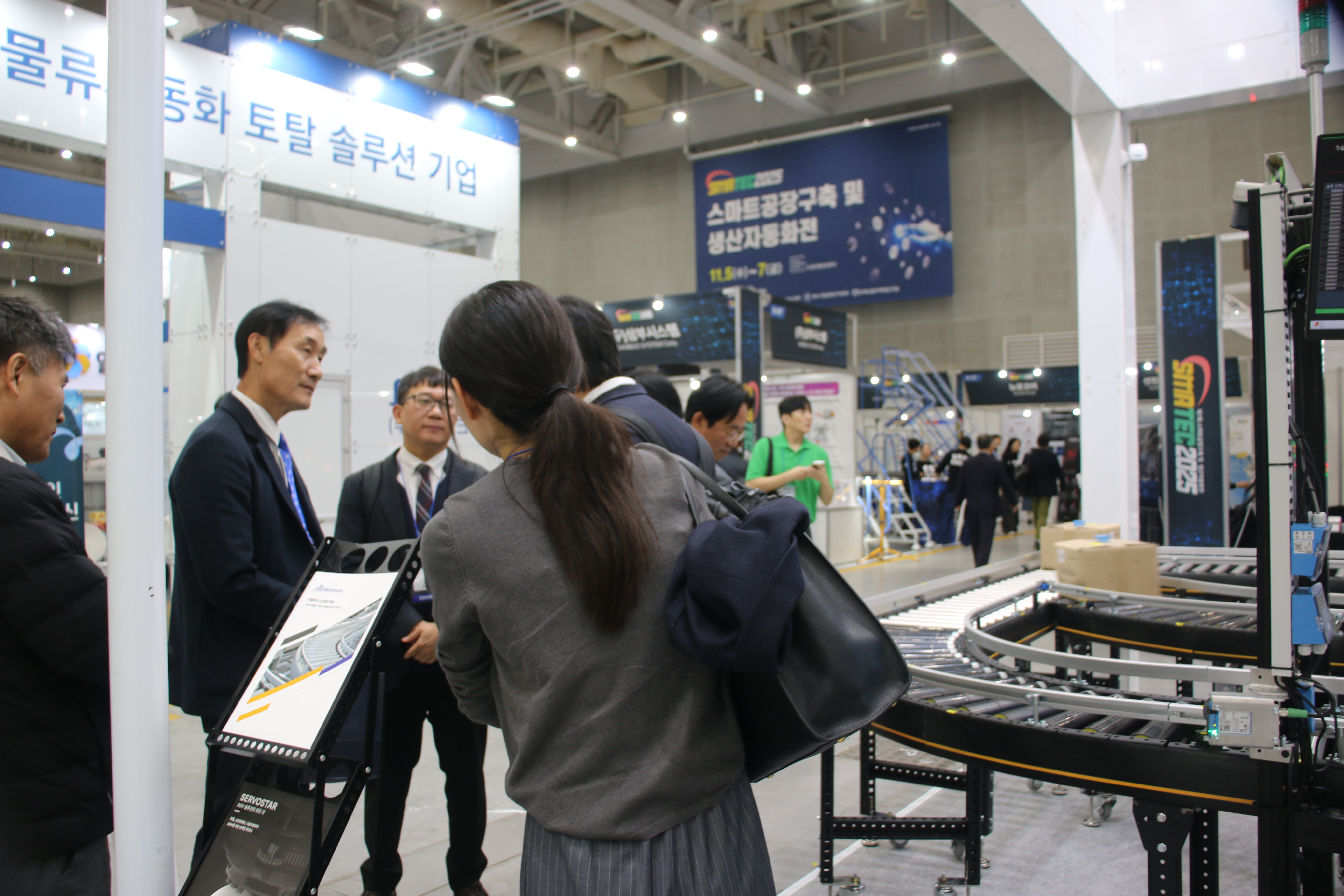 자동화 및 물류관련 전시회에서 항상 주목을 받고 있는 서보스타(대표 이기진)는 이번 ‘SMATEC 2025에서 중국 유수의 파워롤러 기업 맘바롤(Mamba Roll)과 글로벌 센서 시장 1위 기업 독일 씨크(SICK)사의 센서로 꾸며진 모듈형 컨베이어 솔루션을 국내에 처음으로 선보이면서, 이번에도 참관객들의 발길을 묶었다.