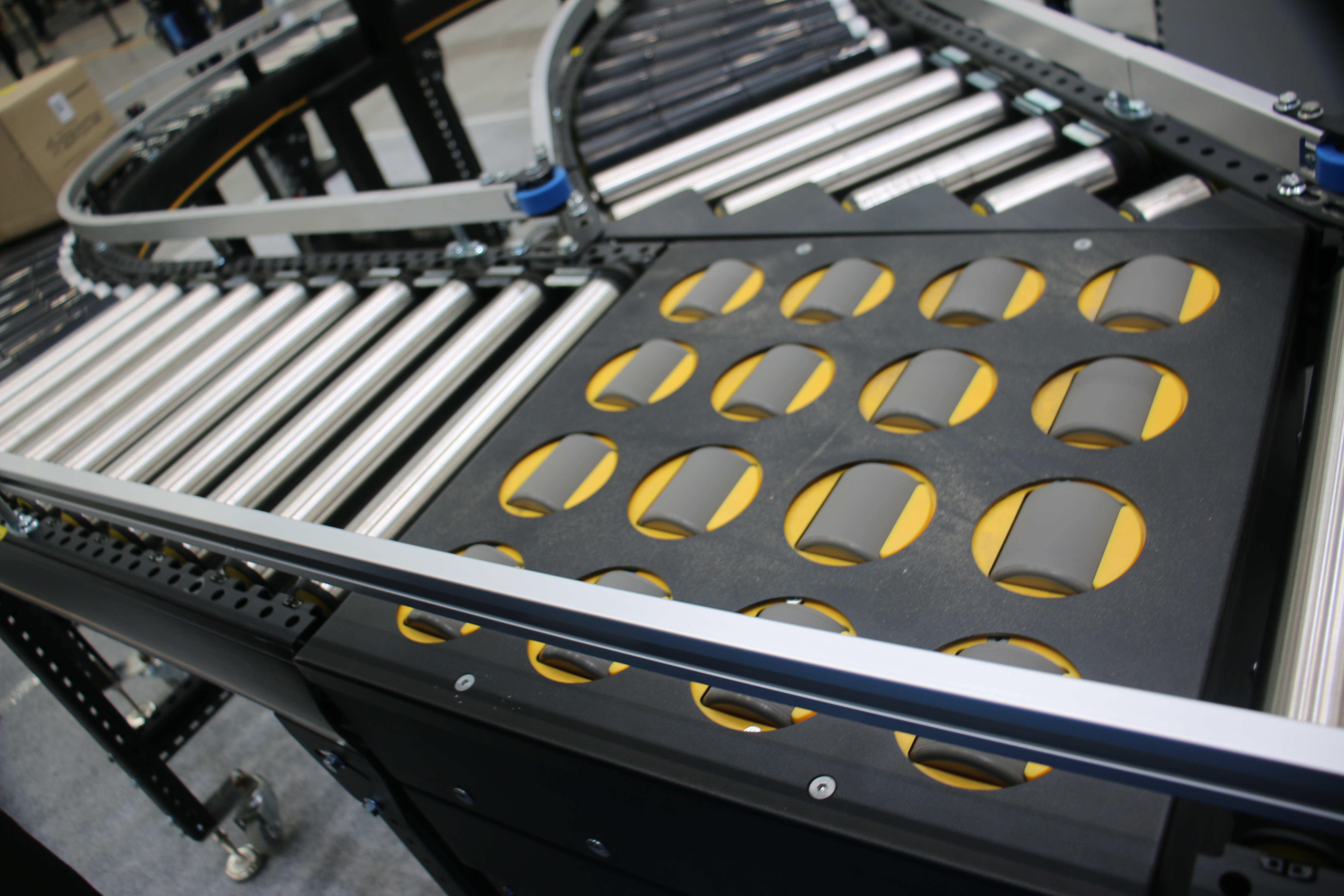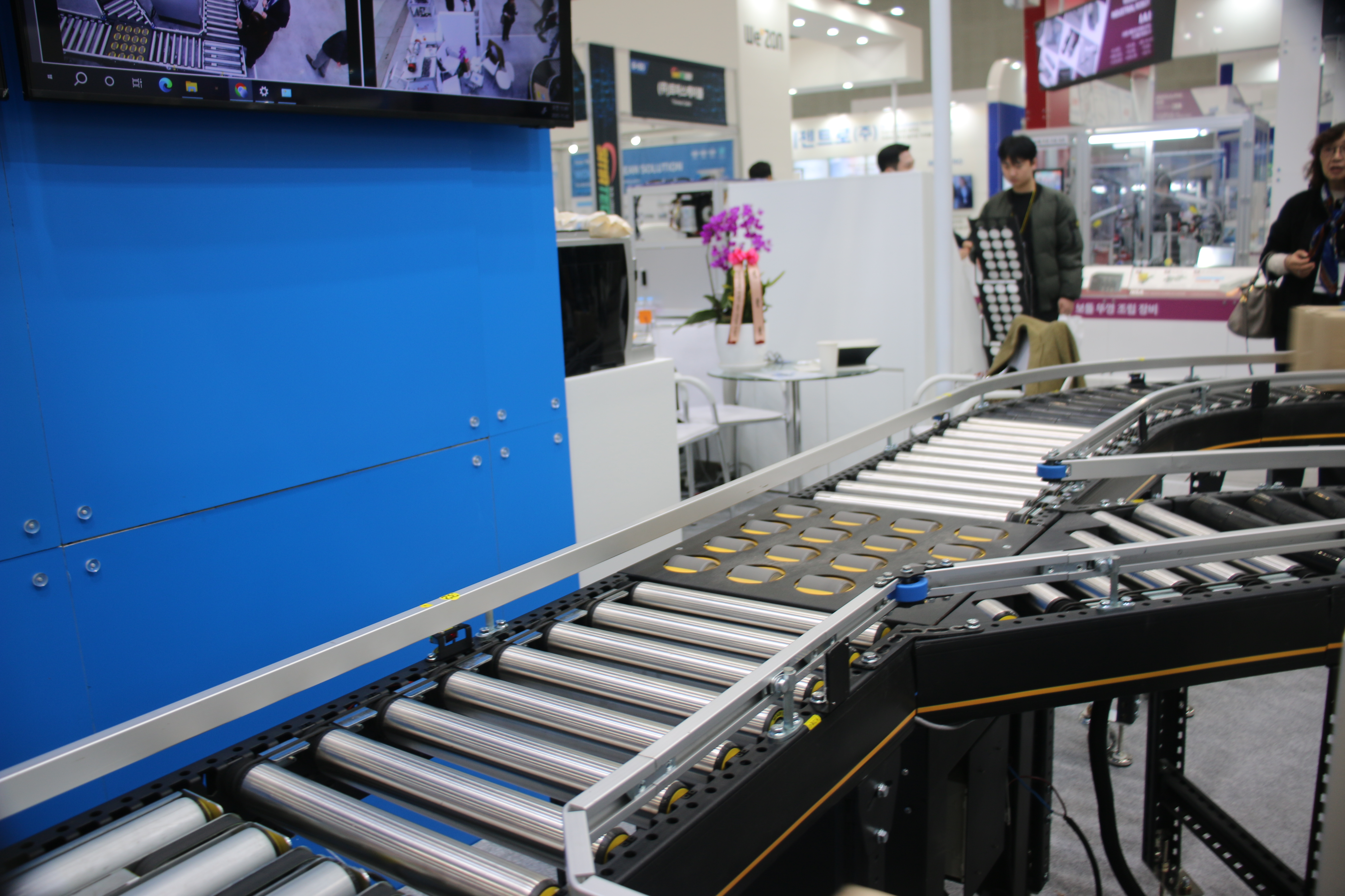 이번 전시에서 선보인 맘바롤 경량 컨베이어 시스템은 ‘산업용 블록’처럼 구축되어 비용 절감과 효율 향상에 기여한다. 직선 컨베이어, 커브 컨베이어 ,휠 소터(Wheel Sorter), 디버터, 고속 디버터, 컨트롤러, 센서가 포함되어 있는 구동 및 컨트롤을 통합한 시스템으로 구성되어 있다 .
