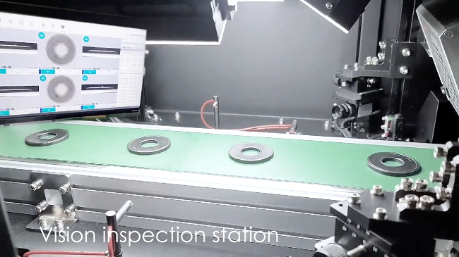 32캐비티 금형 기준 12초의 택 타임으로 제품의 모든 영역을 안정적으로 검사하고 있다. / 사진. 여기에