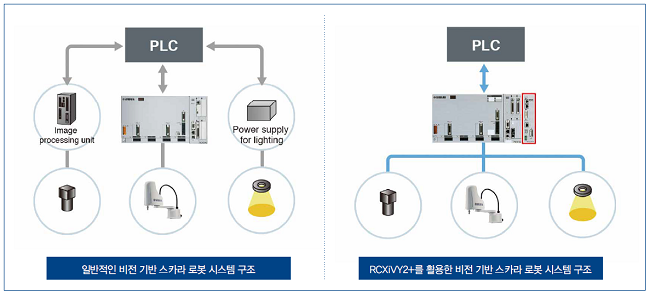윤여진 상무는 “스카라 로봇과 비전 연동이 로봇 제어기 내부에서 이뤄지기 때문에 고객 입장에서는 고려해야 될 요소가 단순해진다. 현장에서는 조명 세팅 정도만 추가적으로 협의하면 되는 경우가 많은데, 조명 제어 역시 로봇 제어기에서 함께 다룰 수 있다. 전장 공간 측면에서도 외부 PLC와 비전 제어기를 별도로 설치할 필요가 없어 제어반 구성과 배선 측면에서의 유연성도 확보했다.”라고 밝혔다.