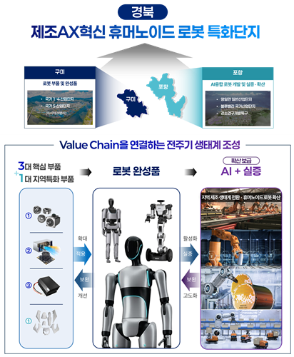 이번 특화단지는 산업통상부가 로봇을 신규 국가첨단전략산업으로 지정하고 핵심부품 자립화 및 제조AI 전환 정책 기조에 따라 추진되는 사업으로, 구미의 로봇 부품 제조 역량과 포항의 연구·실증 인프라를 연계한 ‘K-로봇 메가클러스터’ 구상을 바탕으로 부품–완제품–AI 실증으로 이어지는 로봇산업 전주기 생태계 구축을 목표로 한다.