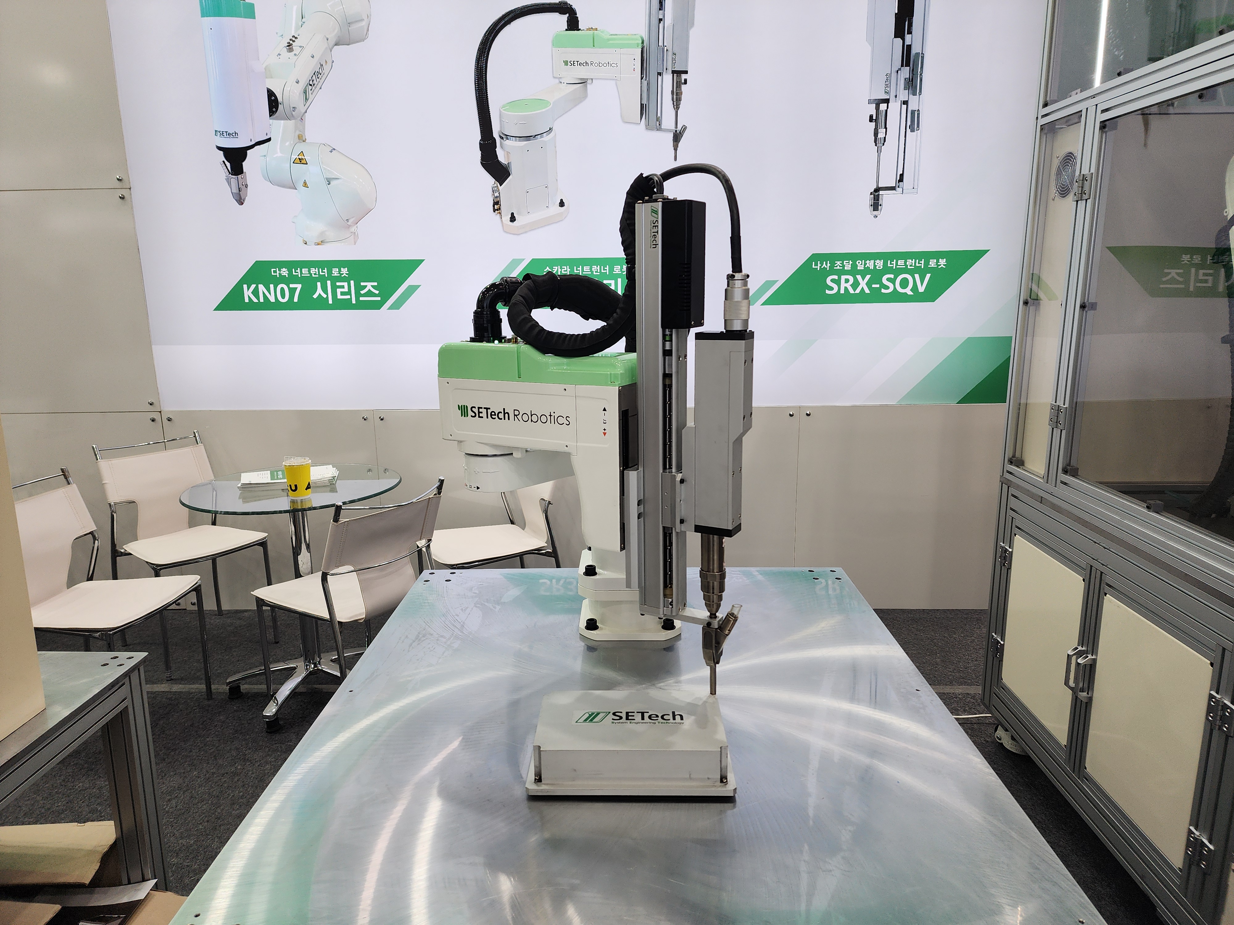 이번 전시에서 공개된 ‘SR3 시리즈’는 스카라 로봇과 너트런너가 결합된 체결 자동화 솔루션이다. 로봇에서 너트런너를 직접 제어하는 구조를 적용해 시스템 관리 편의성을 높였으며, 토크 내장형 너트런너를 통해 고정밀 체결이 가능한 것이 특징이다.