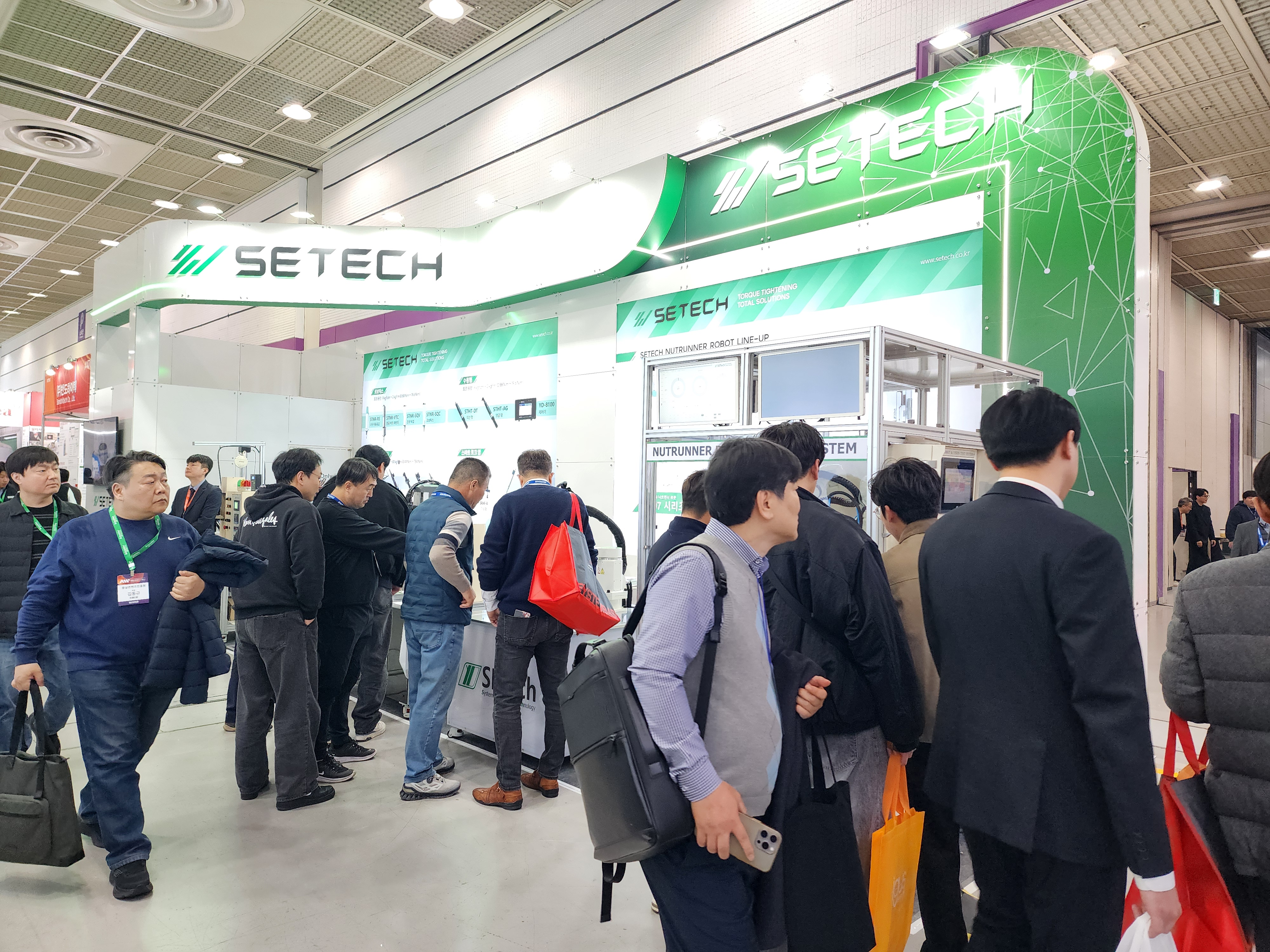 이와 함께 쎄텍은 전시 부스에서 로봇 너트런너를 비롯한 다양한 체결 자동화 솔루션을 선보이며 관람객들의 관심을 끌고 있다. 실제 공정에 적용 가능한 자동화 장비와 기술을 소개하면서 현장을 찾은 참관객들이 직접 확인할 수 있도록 구성해 지나가는 고객들의 시선을 사로잡고 있다.