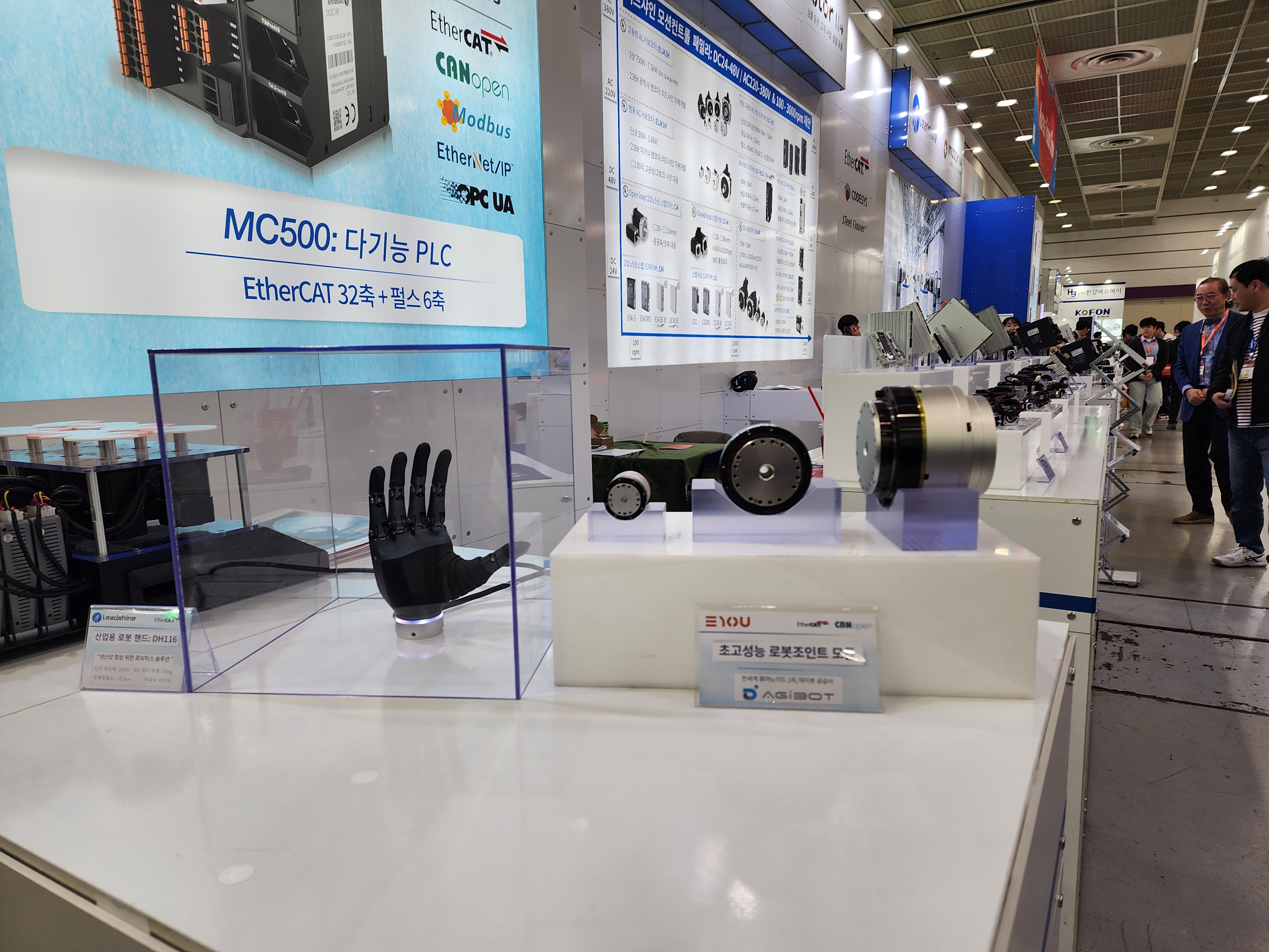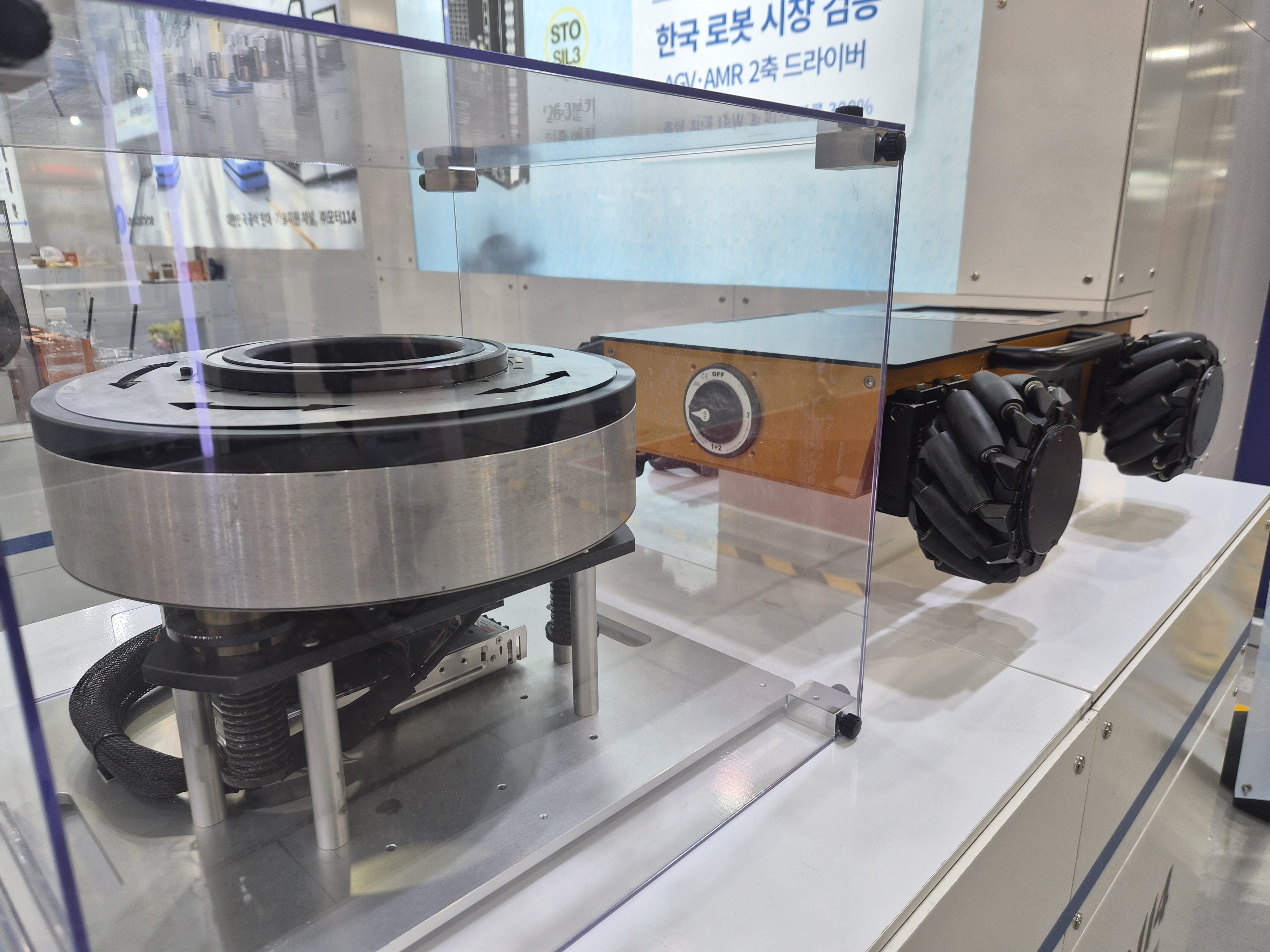 휴머노이드 로봇 관련 솔루션도 주요 전시 품목으로 소개됐다. 모터114는 로봇 관절에 적용되는 조인트 모듈과 휠 타입 구동 솔루션을 함께 제안했다.