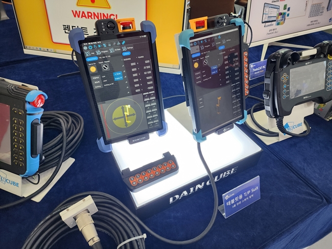 이번 전시회에서 다인큐브는 ‘3종 안전 스위치 장착 태블릿용 T/P Suit’를 공개했다. 해당 제품은 태블릿을 전용 슈트(Suit)에 장착해 로봇 교시조작기로 사용할 수 있도록 설계됐으며, 3종 안전 스위치를 적용해 산업 현장에서 요구되는 안전성을 고려했다. 범용 태블릿을 활용할 수 있어 사용 편의성을 높인 것이 특징이다.