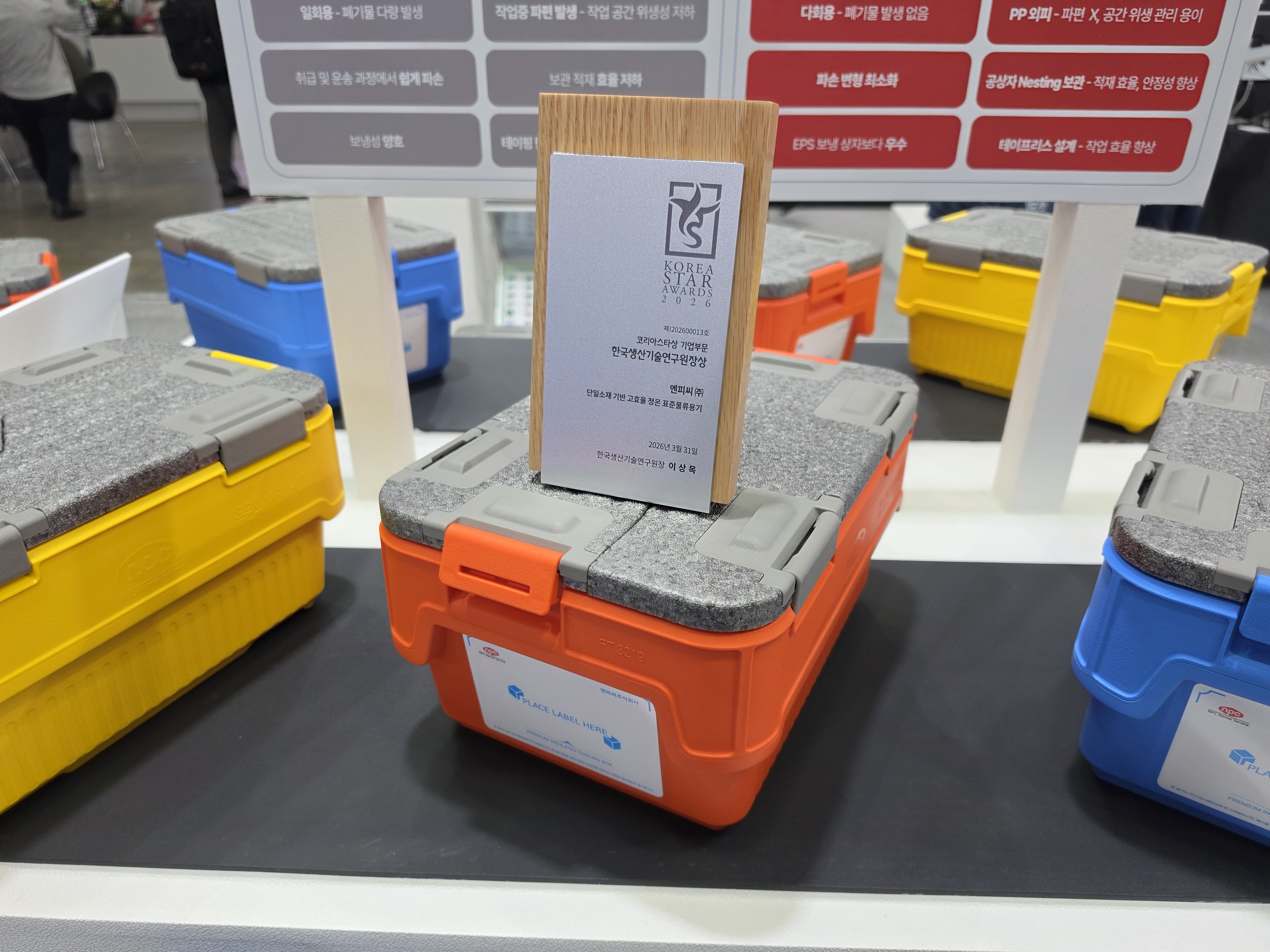 이번 전시에서 NPC는 단일소재 기반 정온 물류용기(아이스박스)와 RFID 기반 스마트 파렛트(SP11)를 선보이며, 친환경과 디지털 전환을 결합한 물류 전략을 강조했다.