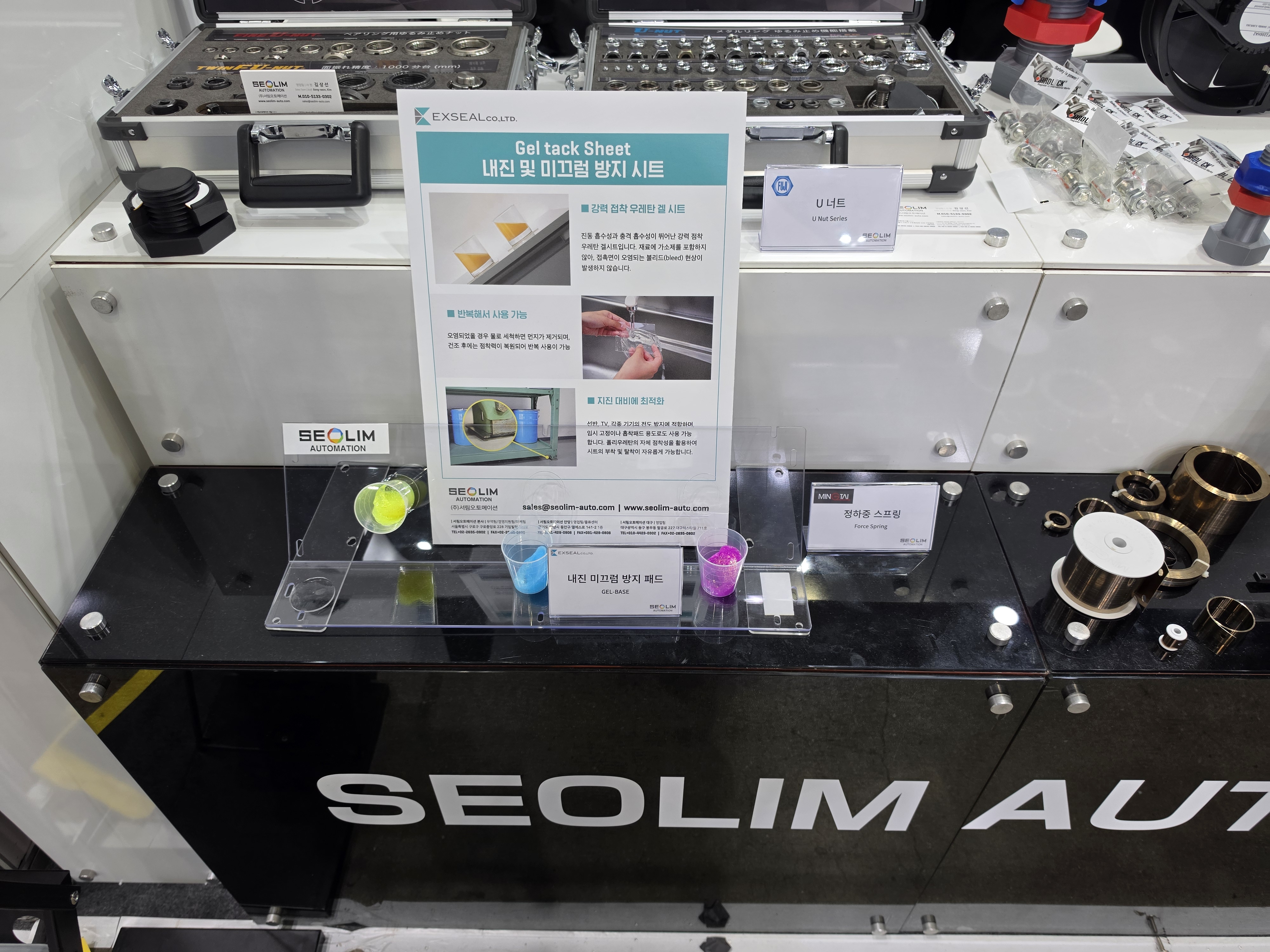 대표적으로 선보인 EXSEAL의 Gel Tack Sheet는 내진 및 미끄럼 방지 기능을 갖춘 점착형 우레탄 겔 시트다. 해당 제품은 강력한 점착력을 바탕으로 장비나 제품의 흔들림을 방지할 수 있으며, 진동 및 충격 흡수 성능이 뛰어난 것이 특징이다.