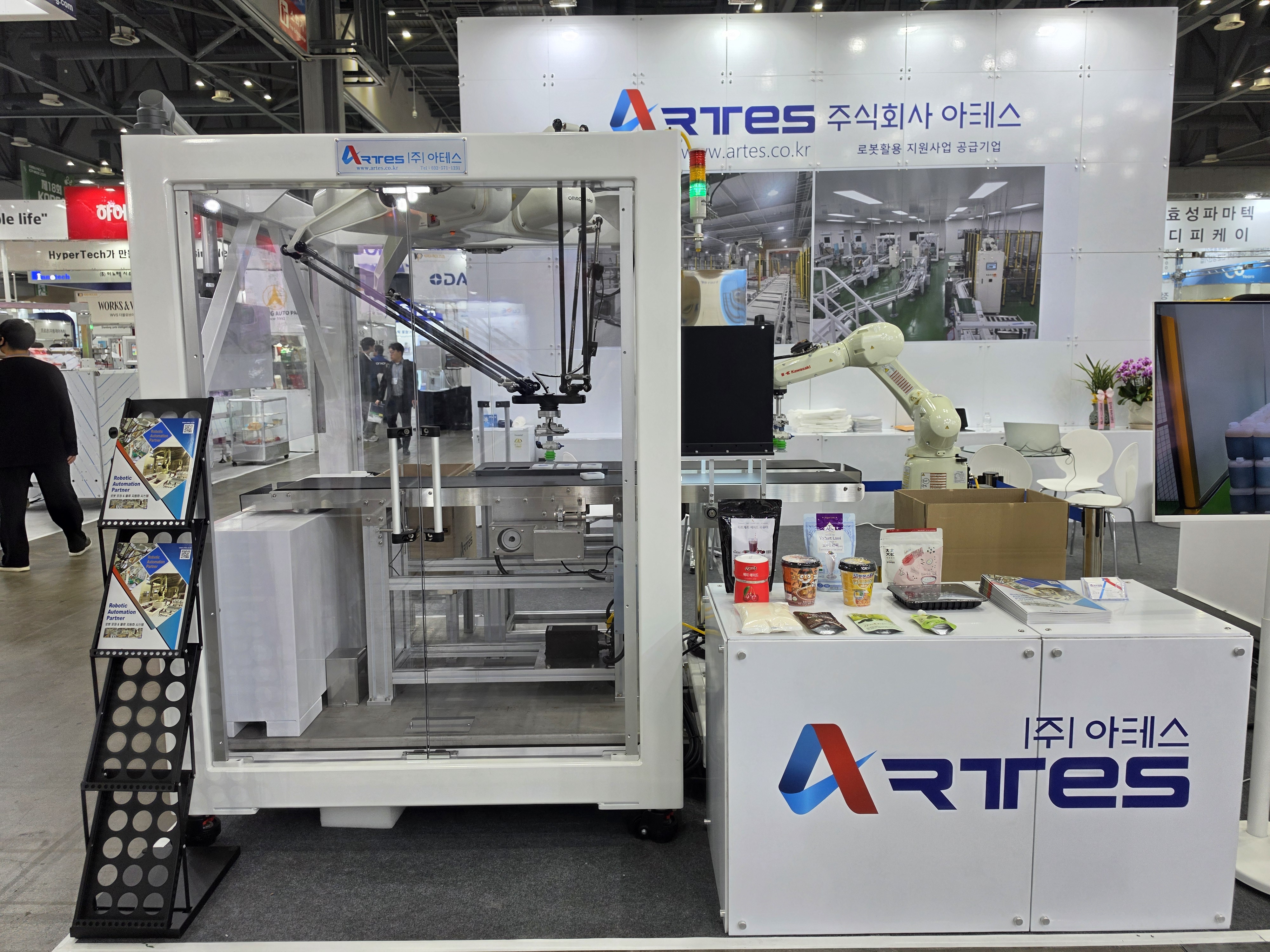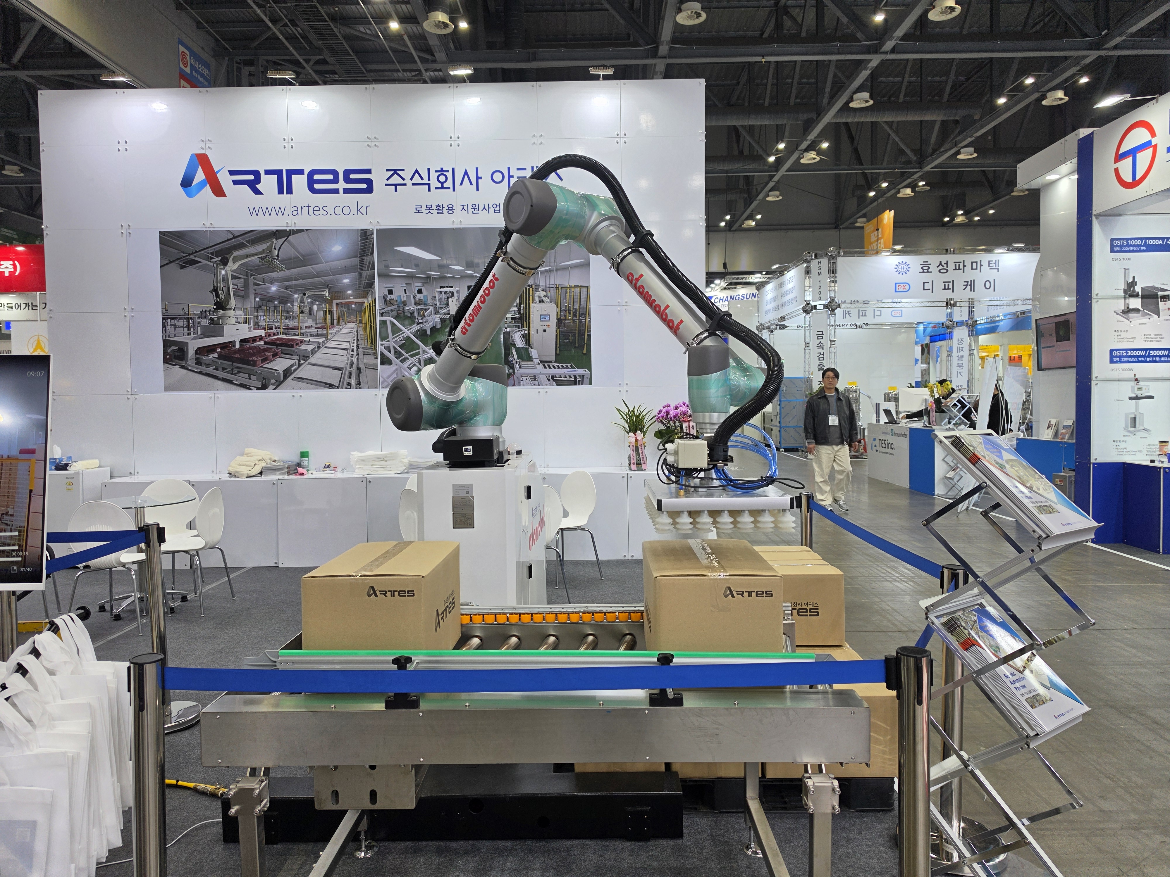 이번 전시에서는 아테스와의 협업을 통해 델타로봇도 공개하며 실제 포장 공정에 적용 가능한 자동화 시스템 구성을 선보였으며, 로봇 기반 팔레타이징 기술의 실용성을 강조했다.