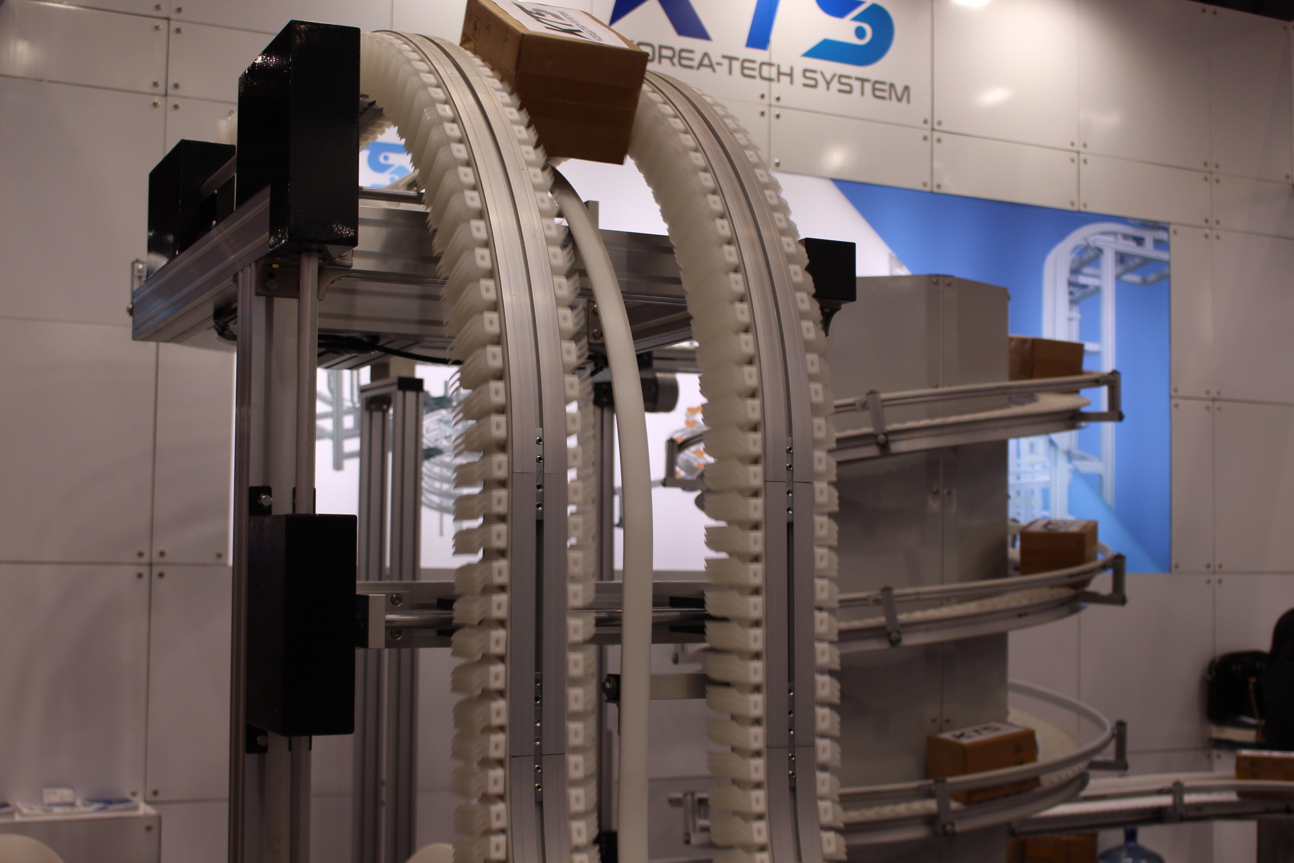 이번 전시회에서 케이티에스는 제조 및 물류 환경에 최적화된 자동화 설비를 공개했다. 대표적으로 플렉시블 컨베이어는 자체 설계 및 제작 기술을 기반으로 개발된 장비로, 특허 소재를 적용해 내구성과 유연성을 동시에 확보한 것이 특징이다. 다양한 생산 환경에 맞춰 자유롭게 라인 구성이 가능해 공간 활용도를 높이고 효율적인 물류 흐름을 구현한다.