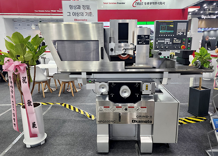 오카모토(OKAMOTO)의 CNC 정밀 성형연삭기 HPG500NC은 성형연삭반 HPG500을 NC화한 제품으로 테이블을 모터 구동(유압 Less)에 의해 폐유 처리가 불필요하며, CO2 절감 효과가 있다.