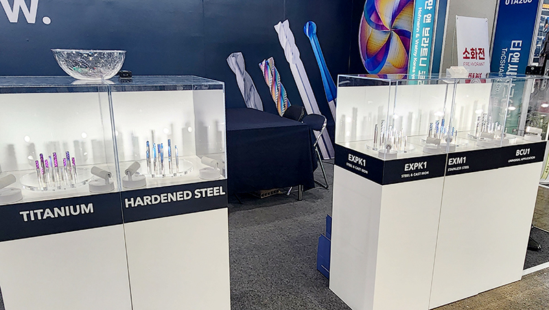 이번 전시에는 알루미늄 건식 가공 가능한 엔드밀, 강/주철 가공 전문 엔드밀, SUS 가공 전문 엔드밀, 범용 엔드밀&드릴, 고경도/열처리 강 가공 전문 엔드밀, 티타늄 가공 전문 엔드밀을 소개한다.
