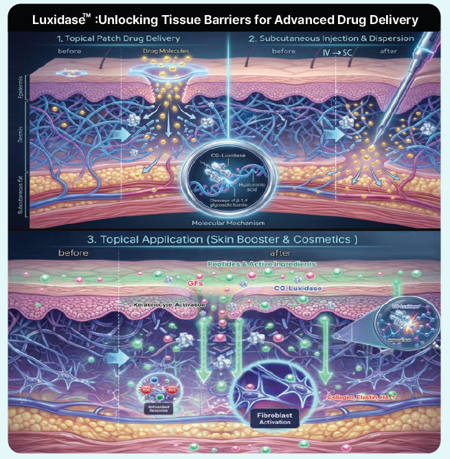 Luxidase는 피부 내 히알루론산 구조를 분해하며 유효성분의 이동성과 작용 환경을 개선하는 플랫폼 기술로, 케어젠의 펩타이드 및 단백질뿐만 아니라 기존 기능성 원료의 효능을 보완ㆍ강화할 수 있는 차세대 솔루션으로 주목받았다.