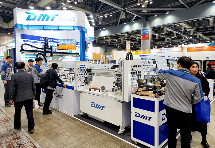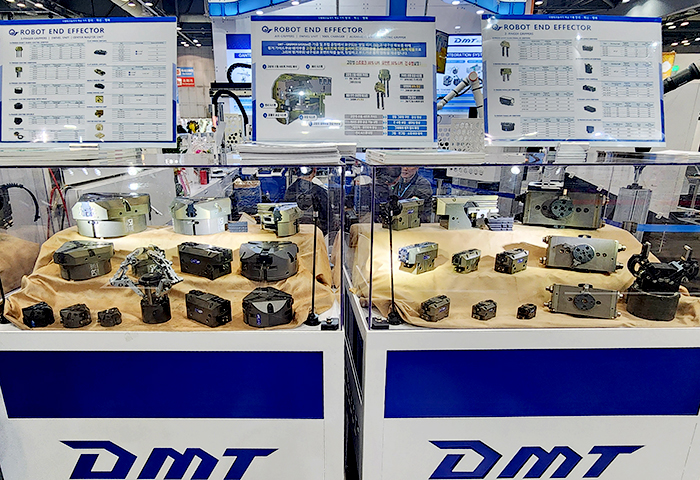 (주)디엠테크놀러지로 더 잘 알려진 DMT로봇은 겐트리 로봇 시스템, 다관절 로봇 시스템, 그리퍼 & 툴체인저, 해비듀티 모듈, Rack & Pinion 부품을 핵심 기술군으로 삼아, 고중량·장거리·다품종 생산 환경에서도 안정적으로 작동하는 자동화 라인을 구축해 고강성 구조 설계와 반복 정밀도 확보가 요구되는 물류 자동화 및 자동창고 시스템에서 강점을 보인다.